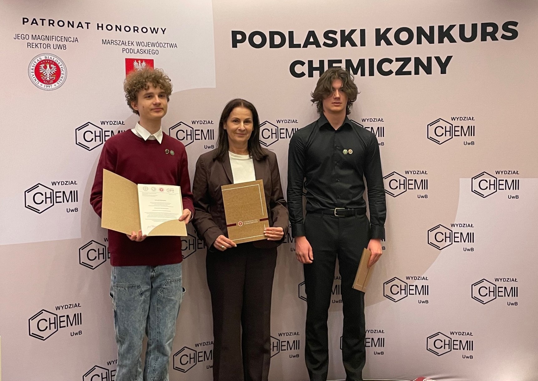 Sześcioro naszych uczniów odebrało nagrody za uzyskanie tytułu laureata w Podlaskim Konkursie Chemicznym: Emilia Pełkowska (4α), Szymon Rybiński (4α), Mikołaj Waniewski (4α), Aleksandra Łuszyńska (4α), Michalina Skiepko (4α), Mikołaj Wiszenko (4β).