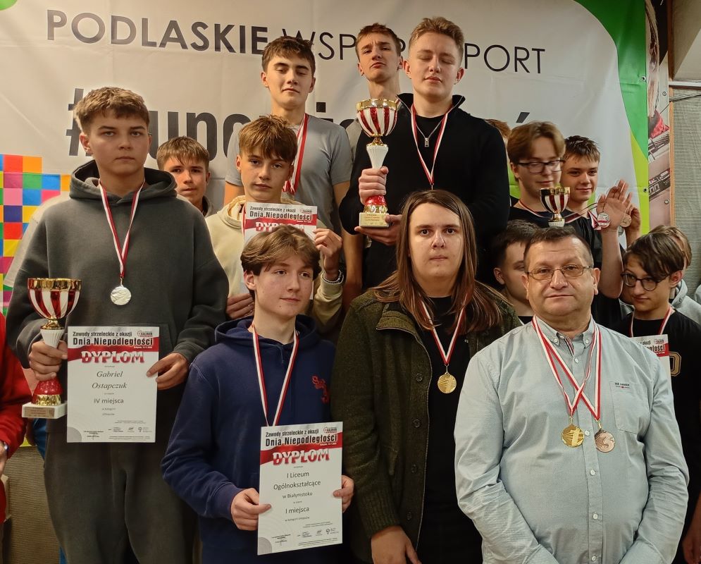 We czwartek, 13 listopada 2025 r. odbyły się zawody strzeleckie z okazji Dnia Niepodległości. Wzięły w nich udział reprezentacje dziewcząt i chłopców naszej szkoły w składzie: Karolina Pawluczuk, Karolina Więcko, Barbara Iłendo (wszystkie z kl. 1B), Weronika Gabińska (kl. 1G), Daria Andrzejuk (kl.1C), Gregor Moroz (kl. 1G), Nataniel Kasperuk i Adam Okułowicz (obaj z kl. 1D), Maksymilian Łukasik i Antoni Mnich (obaj z kl. 1A).