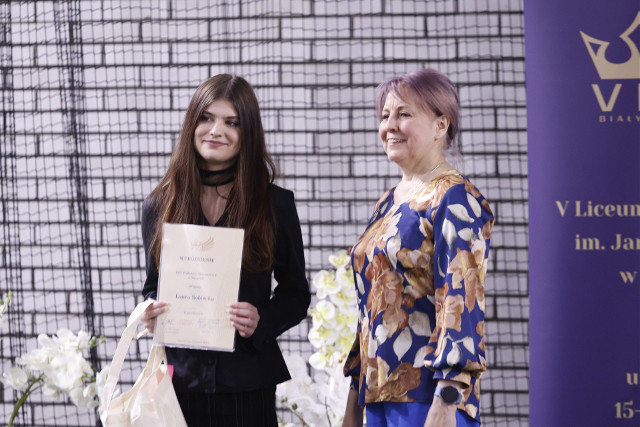 Serdecznie gratulujemy Marysi sukcesu, zwłaszcza, że jako jedyna w województwie podlaskim, została takim tytułem wyróżniona.