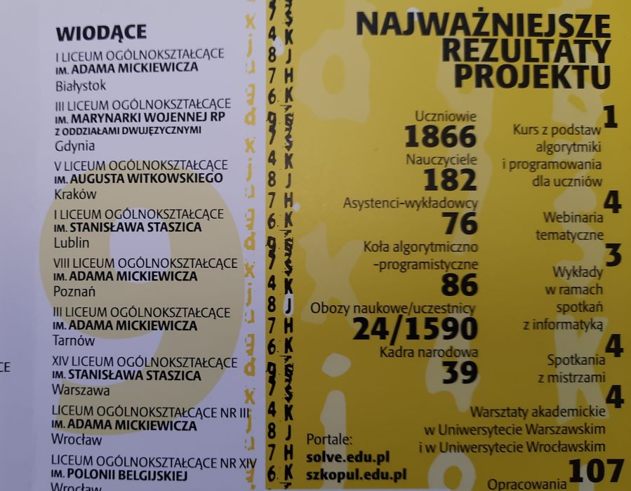 Jest nam miło poinformować, że nasze liceum jako jedno z dziewięciu otrzymało dyplom uznana i tytuł "Szkoły wiodącej w dziedzinie edukacji algorytmiczno-programistycznej" za wyróżniającą się aktywność w ramach projektu Mistrzostwa w algorytmice i programowaniu - Uczniowie w roku szkolnym 2024/2025.