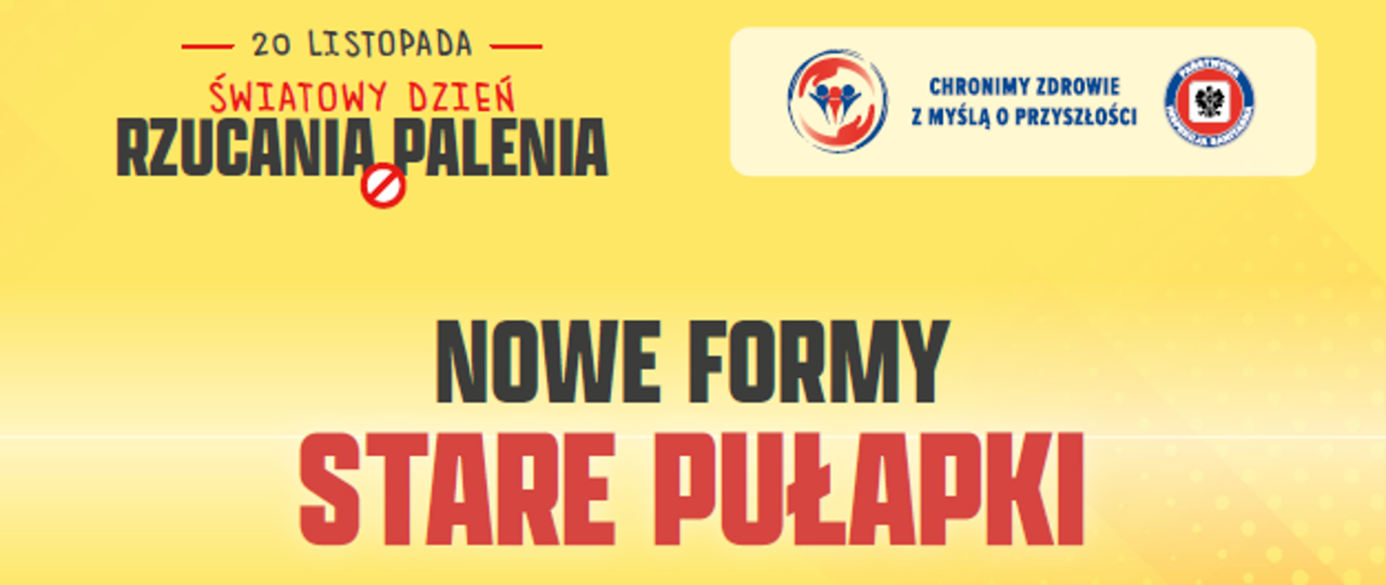 Światowy Dzień Rzucania Palenia jest obchodzony w wielu miejscach na świecie, w Polsce od 1991 roku jest organizowany przez Centrum Onkologii i Fundację Promocja Zdrowia. W ramach obchodów Główny Inspektorat Sanitarny rozpoczyna kampanię edukacyjną „Nowe formy – stare pułapki” skierowaną do młodzieży, rodziców i nauczycieli, której celem jest dostarczenie rzetelnej wiedzy o nikotynie i jej negatywnych skutkach zdrowotnych. Prosimy o zapoznanie się z materiałami edukacyjno-informacyjnymi. Materiały te pomagają rzetelnie informować, obalać mity i wspierać młodych w podejmowaniu zdrowych decyzji.